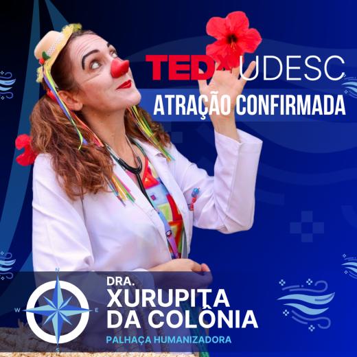 Palhaça HumanizadoraA Dra. Xurupita da Colônia é Palhaça Humanizadora, atuando de forma voluntária no Hospital Infantil Joana de Gusmão e no Hospital Universitário Professor Polydoro Ernani de São Thiago. Apresentadora de atividades lúdicas em ambientes corporativos, públicos e privados. Formada em besteirologia pela Universidade da Vida, a Dra. Xurupita da Colônia mostra que rir é uma questão muito séria de saúde mental, coletiva e pública.